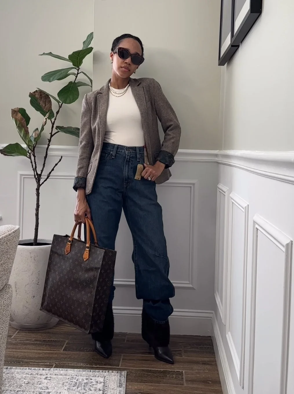 Wearing similar tones from top to bottom creates long vertical lines. This trick is especially flattering for petites in layered fall looks.